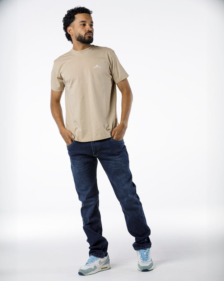 Una prenda que une estilo y significado. La camiseta KH1014 en color beige está confeccionada en 100% algodón de tacto suave, con cuello en rib que mantiene su forma, asegurando frescura y durabilidad.
