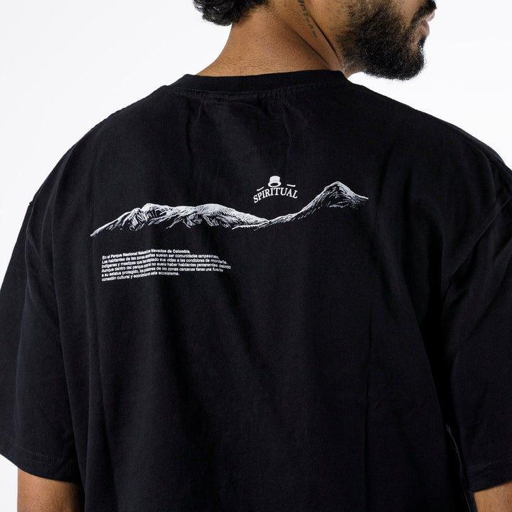 Camiseta KH1018 Negra Oversize con Estampado Paramo Pequeño