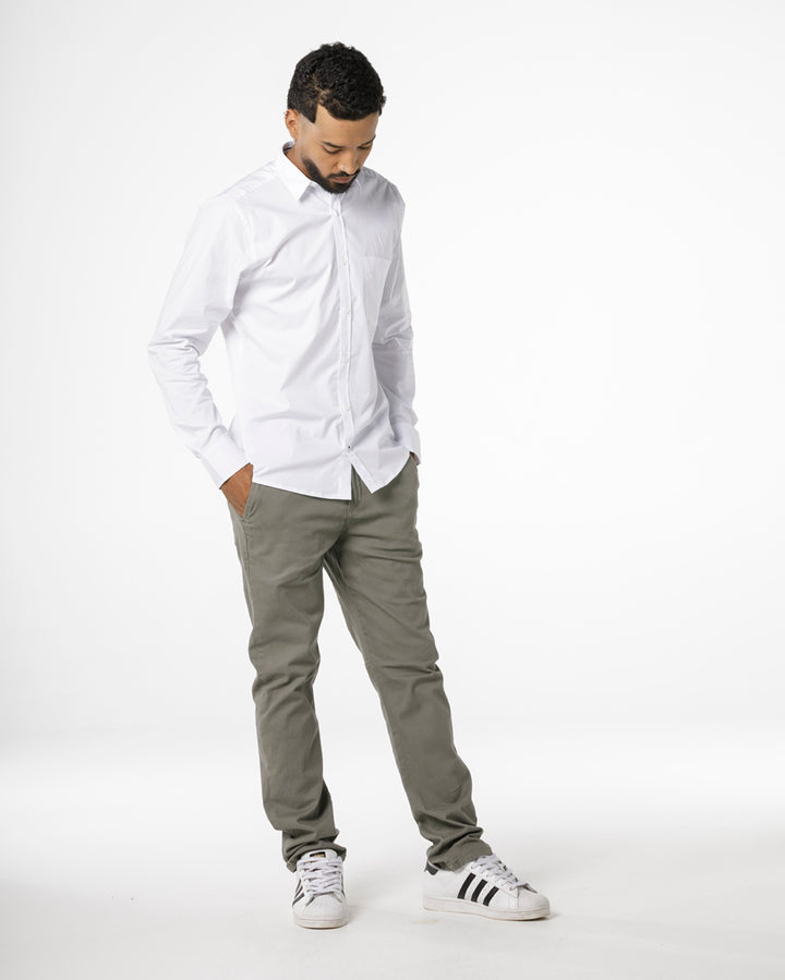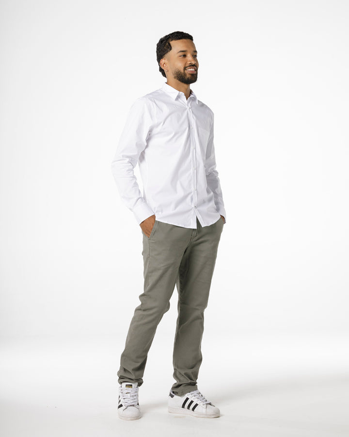 Ref. HS9022. Este pantalón tipo chino combina elegancia y confort en una silueta slim fit que estiliza sin limitar el movimiento. Confeccionado en dril licrado, se adapta al cuerpo con suavidad y precisión.